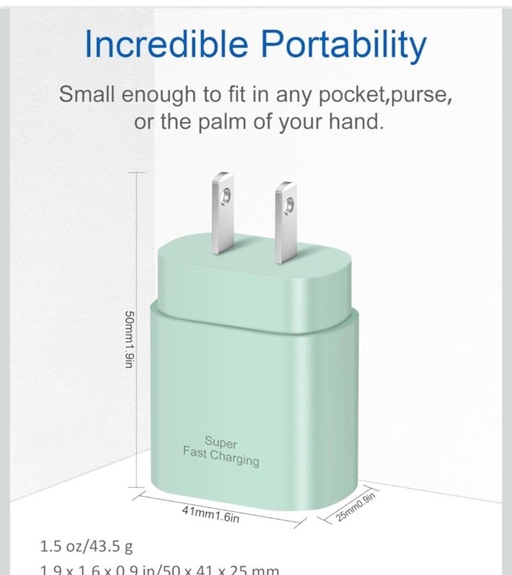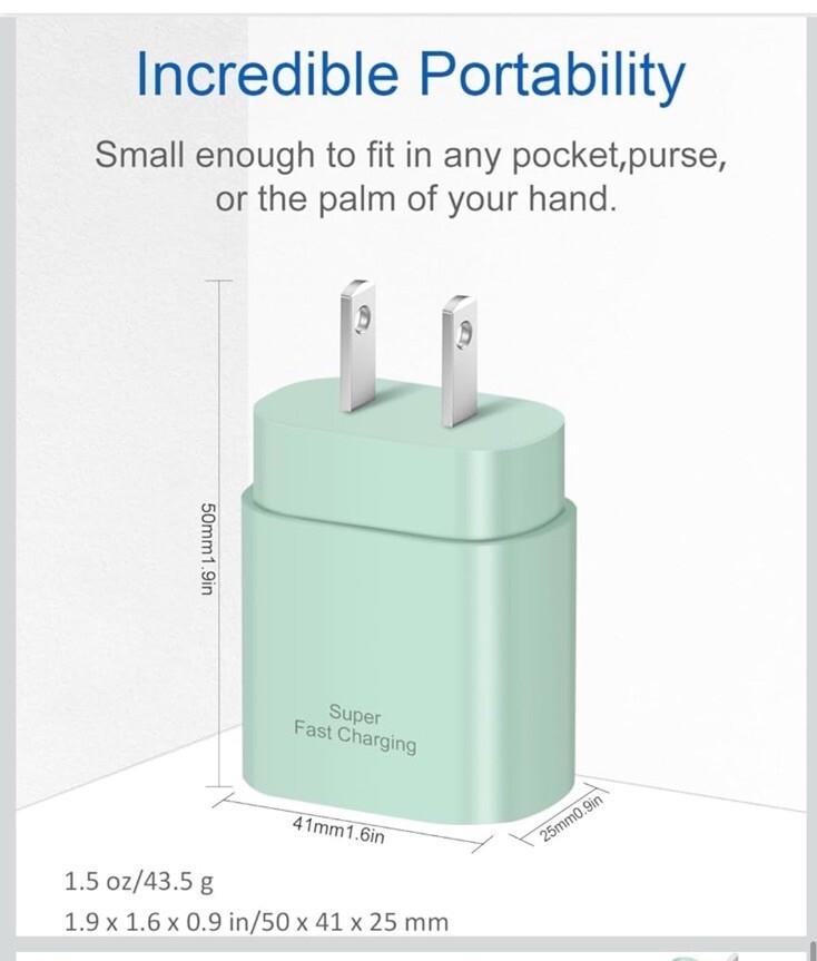 The Type C Charger Fast Charging for iPhone 17 16 15,USB C Samsung Chargers in green color by Novobit is a lightweight charger weighing 5 3 ounces. It offers fast charging capabilities for various iPhone models and is compatible with USB C Samsung chargers. This sleek and efficient charger is designed for quick and convenient charging, making it a practical choice for on-the-go use or at-home charging.