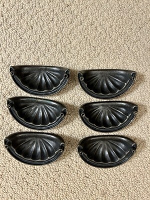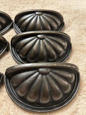 6 Vintage Drawer Pulls . Shell Shaped.. Alloy