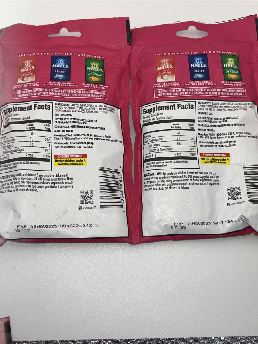 2X HALLS Relief Strawberry Lemonade Flavor Cough Drops 25 Drops Exp:11/25.Dates may vary