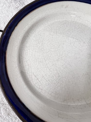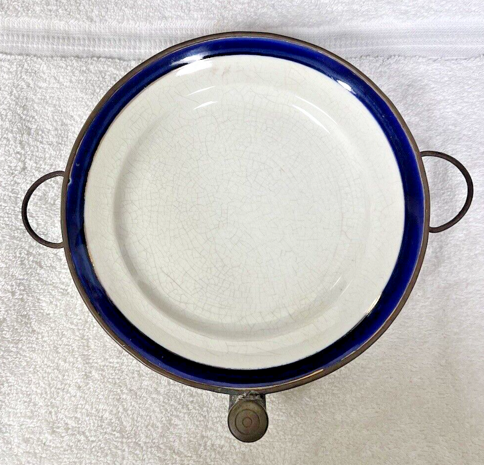 Antique Primitive Copper Proclain Warming Plate Victorian Cobalt Copper White