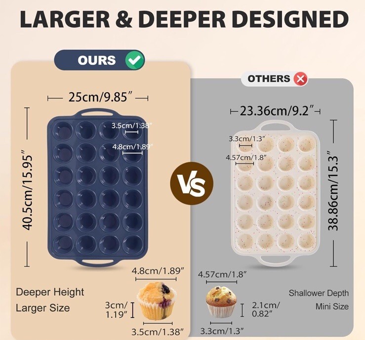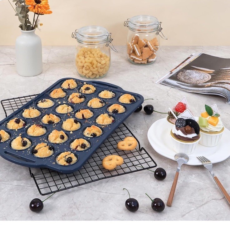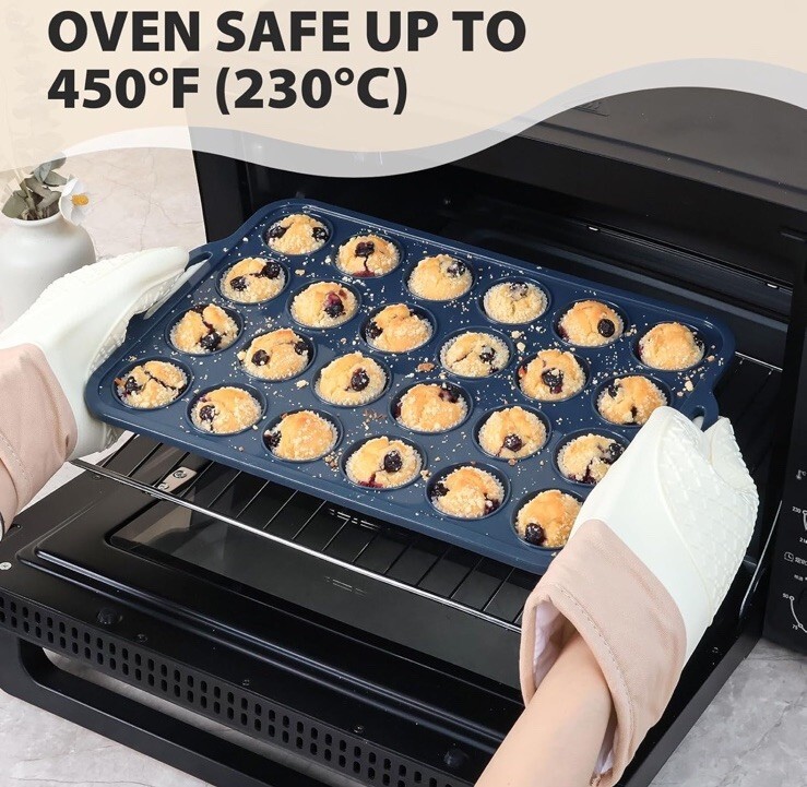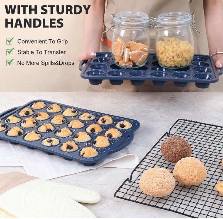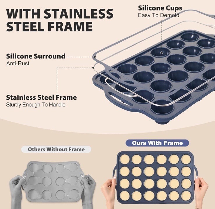Mini Silicone Muffin Pan with Metal Frame, Non Stick Silicone Cupcake Pan