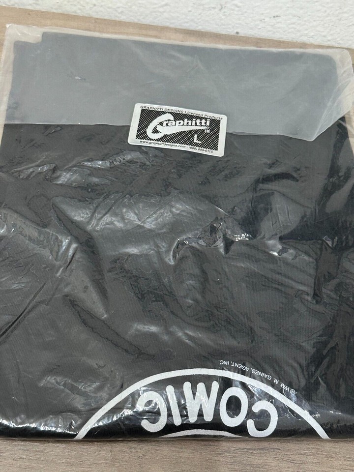 New old stock from Graphitti Designs, this shirt is a great one to add to your collection. It is still sealed in its original packaging, making it a great piece for both tee shirt and comic collectors! Please make sure you select your size at checkout!