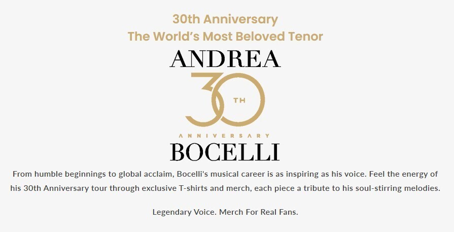 This was a limited run of t-shirts made to celebrate Bocelli's 30th Anniversary.