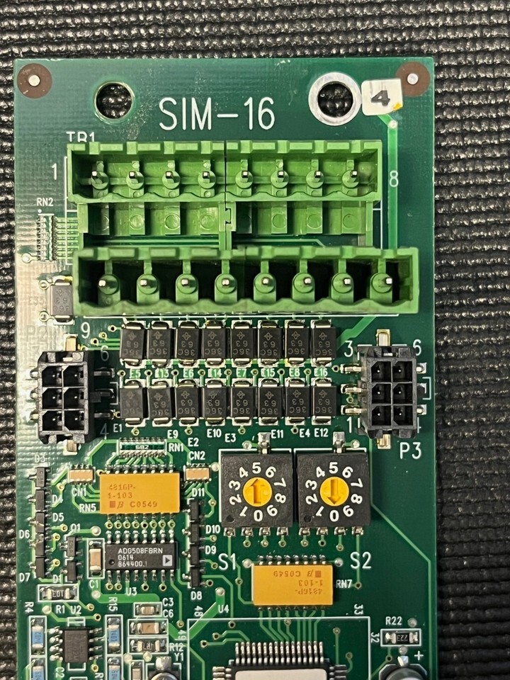 Siemens SIM-16 Supervised Input Module for Cerberus PRO/Desigo fire alarm systems, used and untested for parts or repair. Provides 16 programmable input circuits for monitoring remote devices like flow switches, pressure sensors, or door contacts, plus 2 Form C relays for control?essential for fire techs maintaining legacy panels.