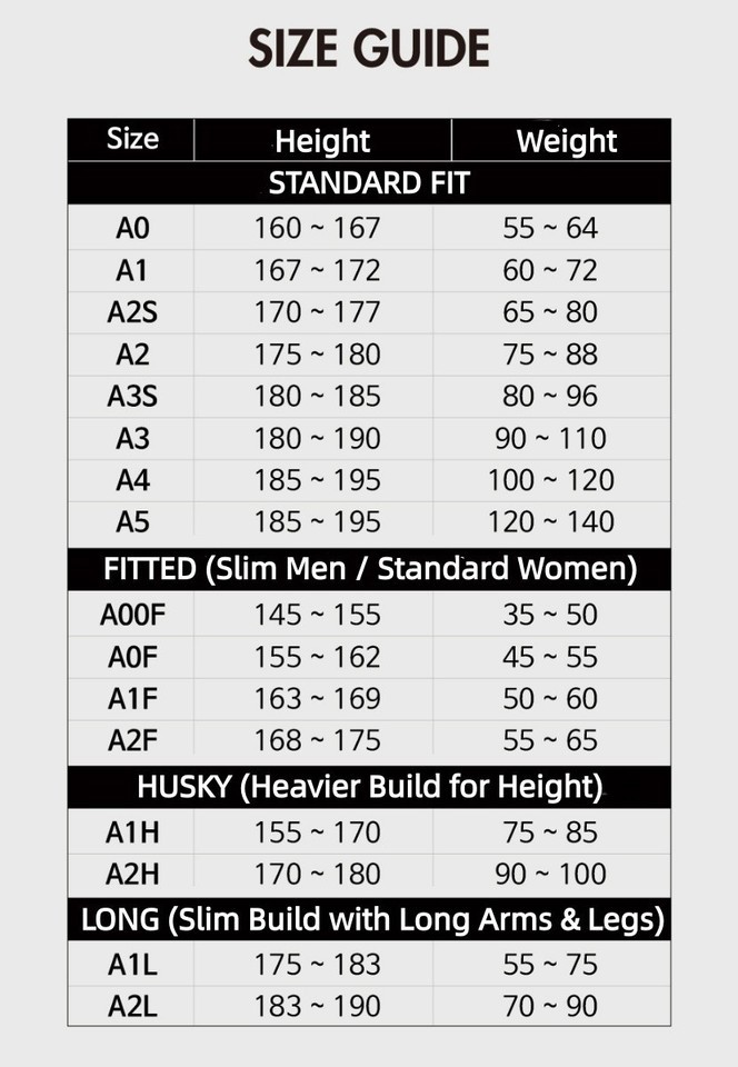 Main Features ---Brand : VITALKIMONOS ---Gender : Unisex ---Material : Cotton 100% ---Color : Black ---Size : A0, A1, A2S, A2, A3S, A4, A5, A00F, A0F, A1F, A2F, A1H, A2H, A1L, A2L
