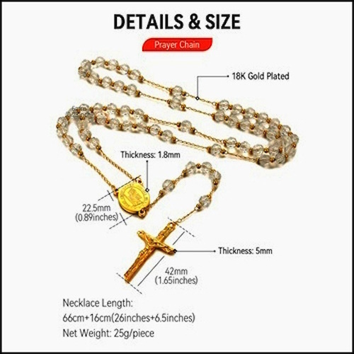 ยท Elegant Design: Clear rosary-inspired necklace featuring a crucifix cross pendant and miraculous center medallion with holy soil.