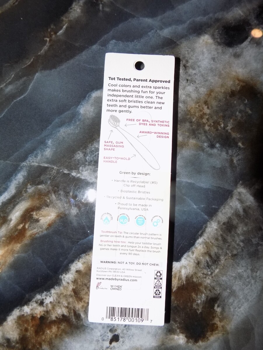 BPA FREE ADA ACCEPTED: You won?t find any of the bad stuff in our Totz Brush. It?s BPA-free, latex-free and phthalate-free, so you can rest easy knowing your child?s smile is in safe hands. Our Totz Toothbrush handle is 100% recyclable. Our toothbrush is also accepted by the American Dental Association.