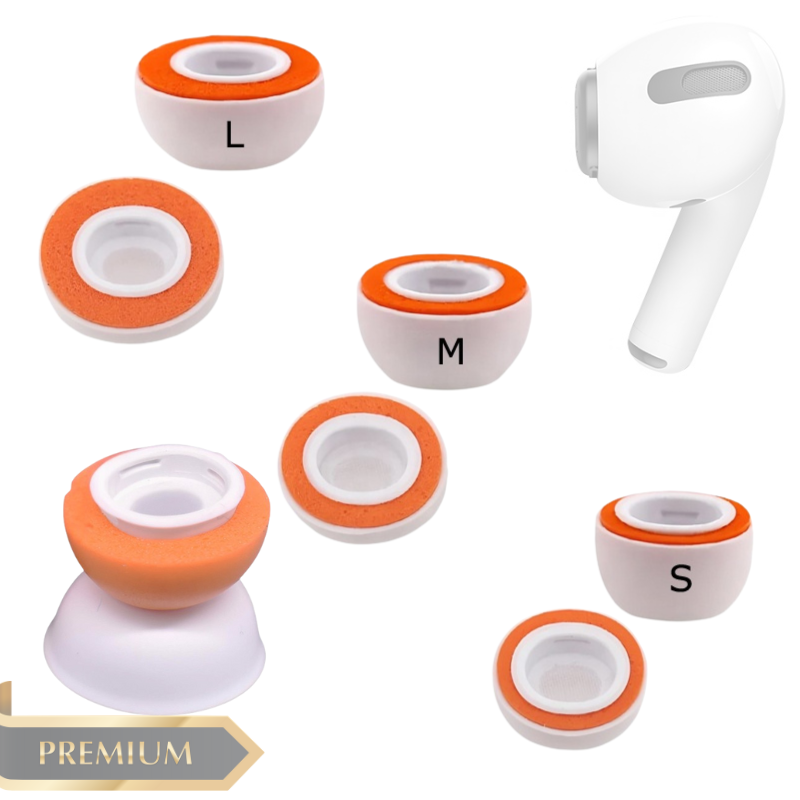 Made of high-quality memory foam and premium silicone, these earplug tips are soft, comfortable, and designed for AirPods Pro (3rd gen). They offer a good seal to reduce outside noise, improve bass response, and ensure simple installation without the need for compression. Available in four sizes (S/M/L) and white + orange color for a personalized fit.