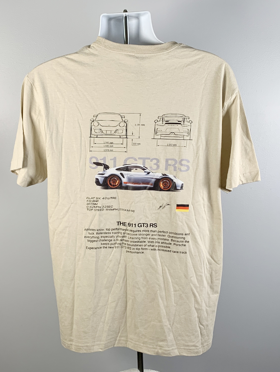 Porsche 911 GT3 RS Sports Car T Shirt Mens Large Tan Cotton