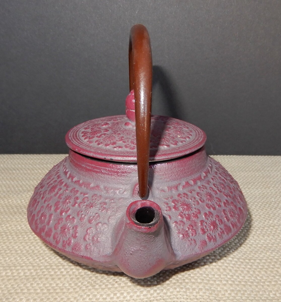 Joyce Chen Tetsubin Cast Iron Purple Teapot W/ Handle Lid & Strainer Stunning