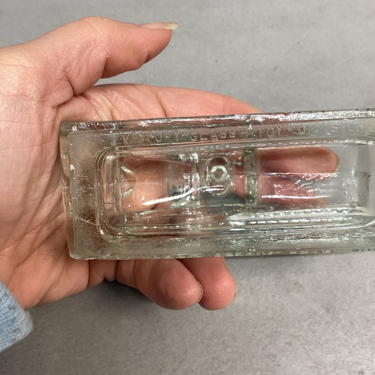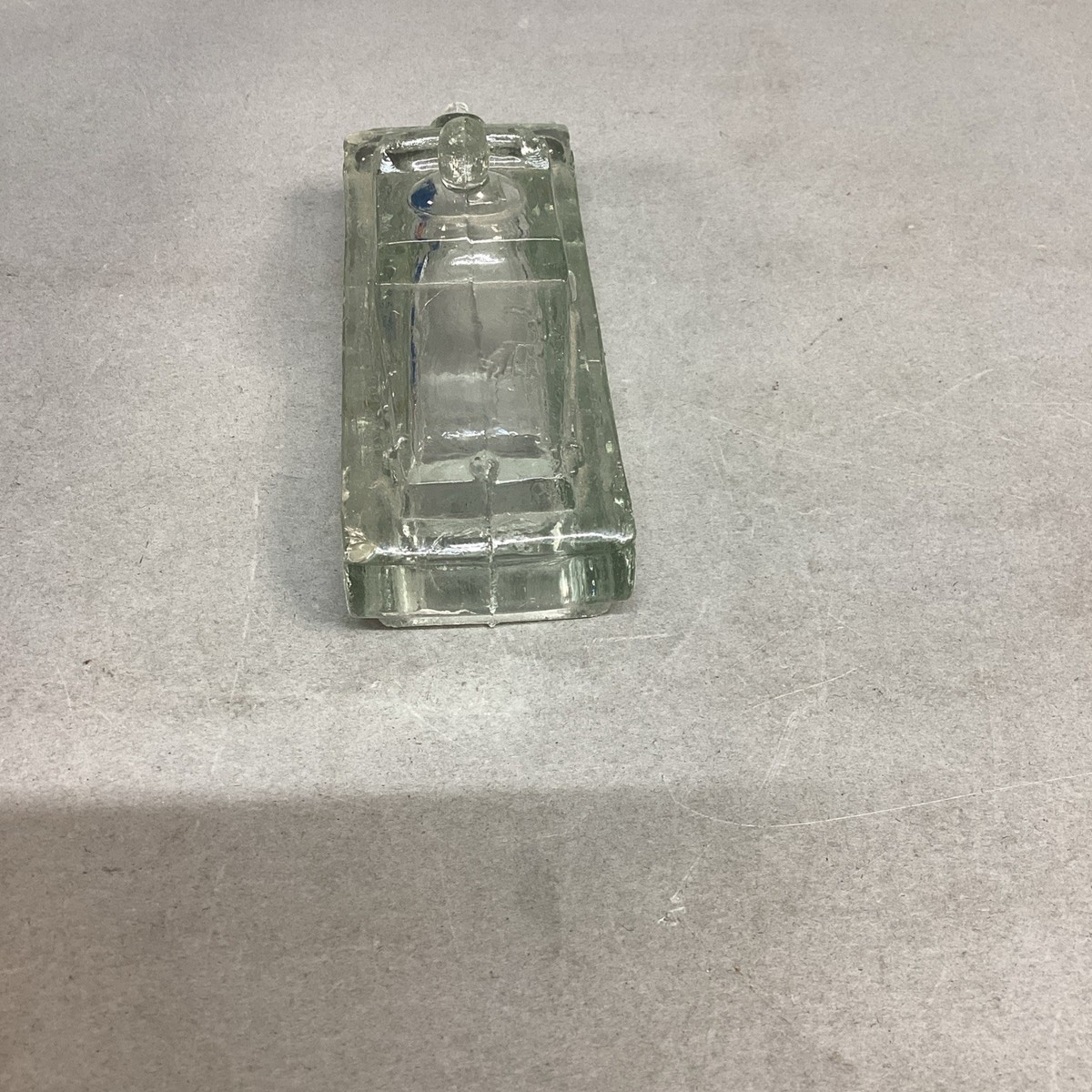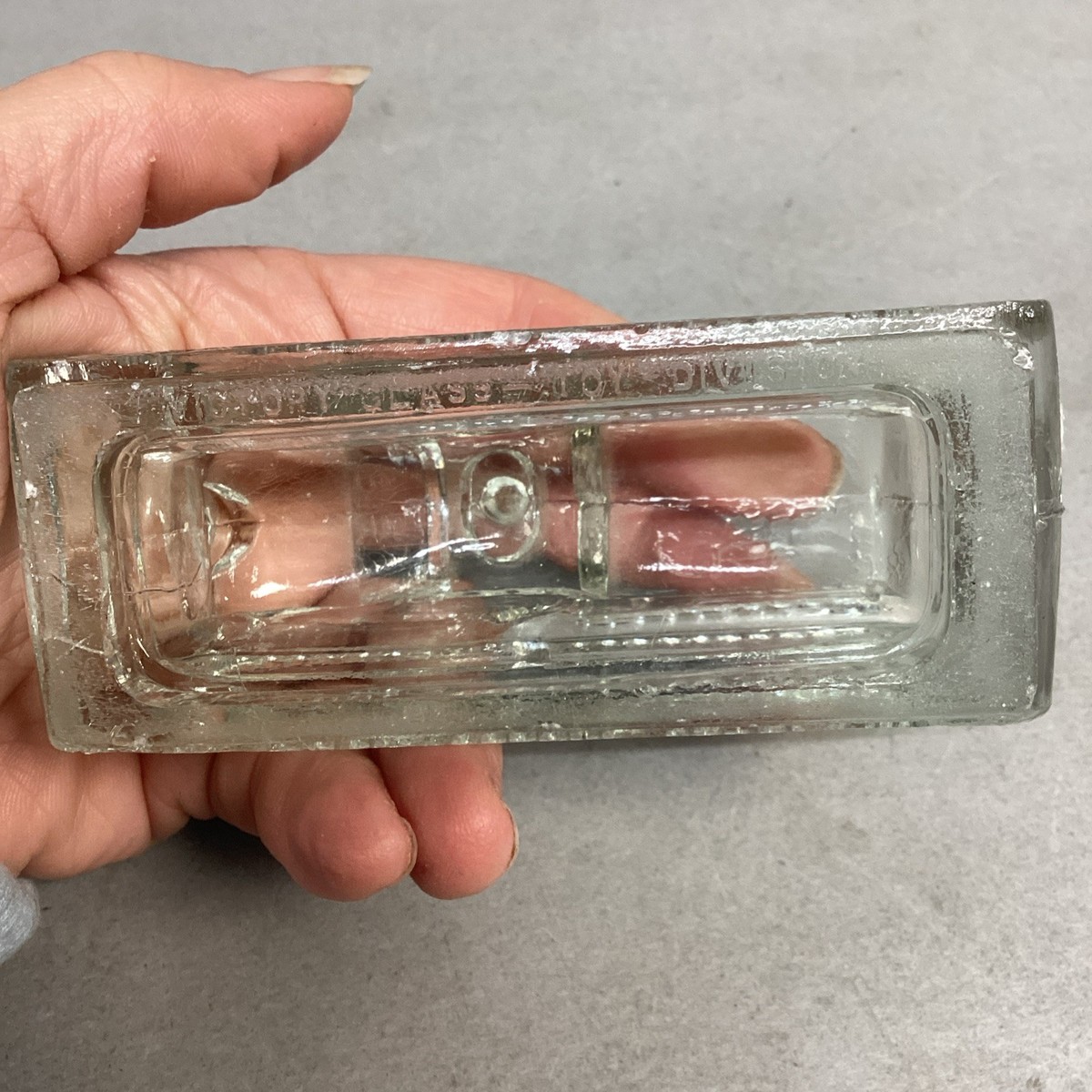 Vintage USA 1942 WWII Era Tank Victory Glass Candy Container. It used to hold candy pellets. This is empty and has no stopper. It has a few chips on it and scratches due to age and use. This measures 4x1.5x2?