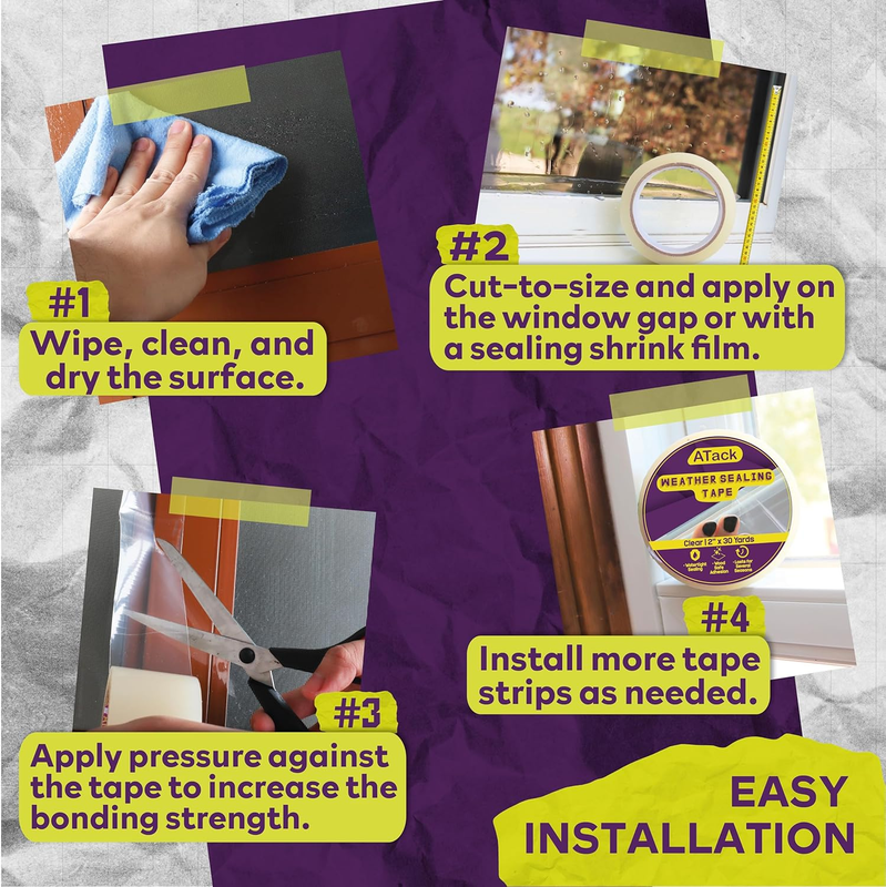 Waterproof winter window sealer plastic tape?s mess free adhesive is easy to install EMPOWERING the AVERAGE homeowner with LITTLE to NO EXPERIENCE in DIY repair to produce PROFESSIONAL-GRADE sealing on windows and rooms.
