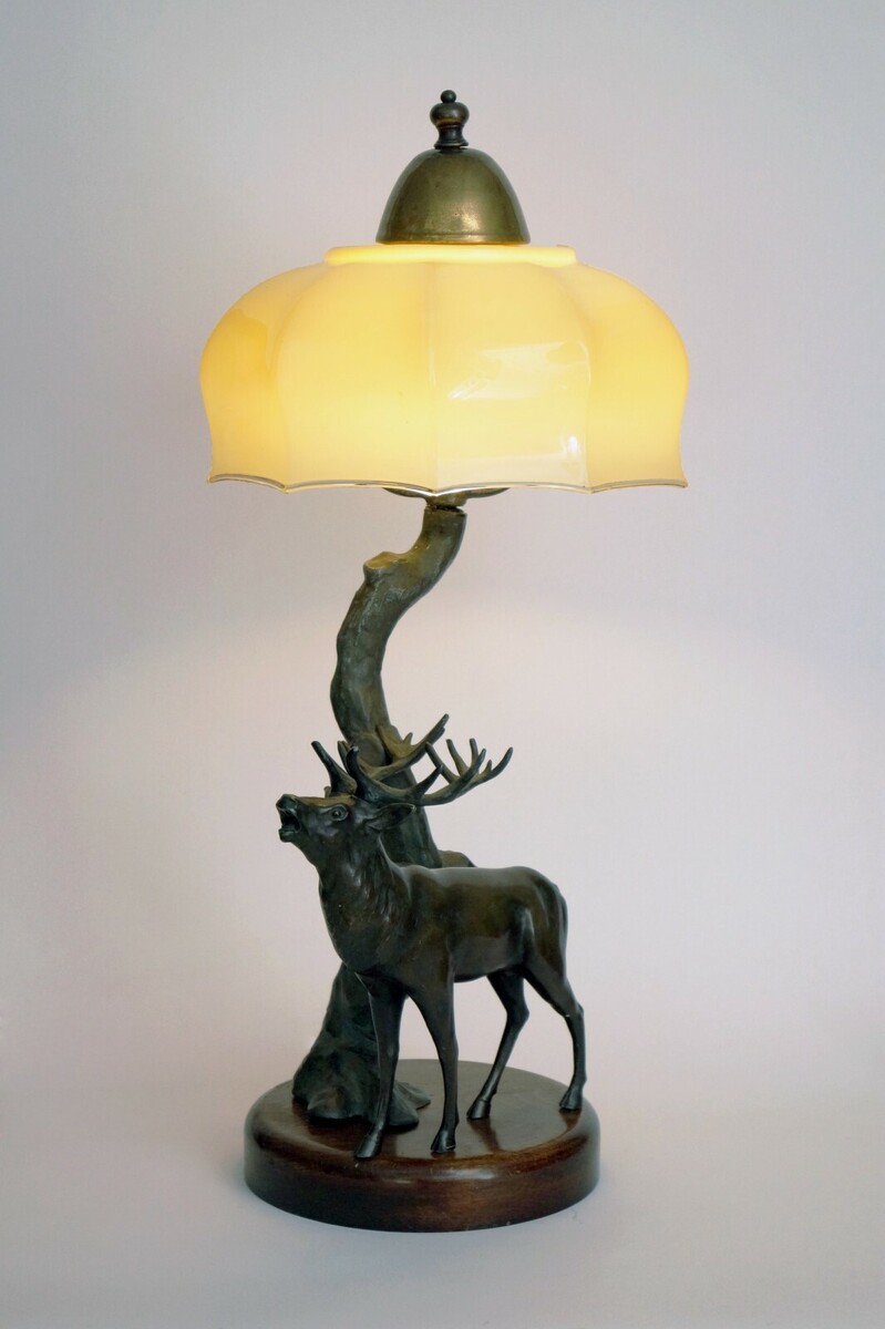 Original Art Deco desk lamp "DEER HUNTER".