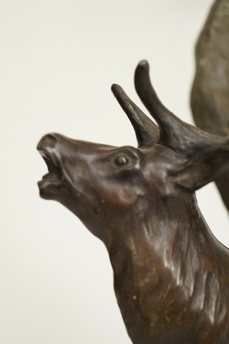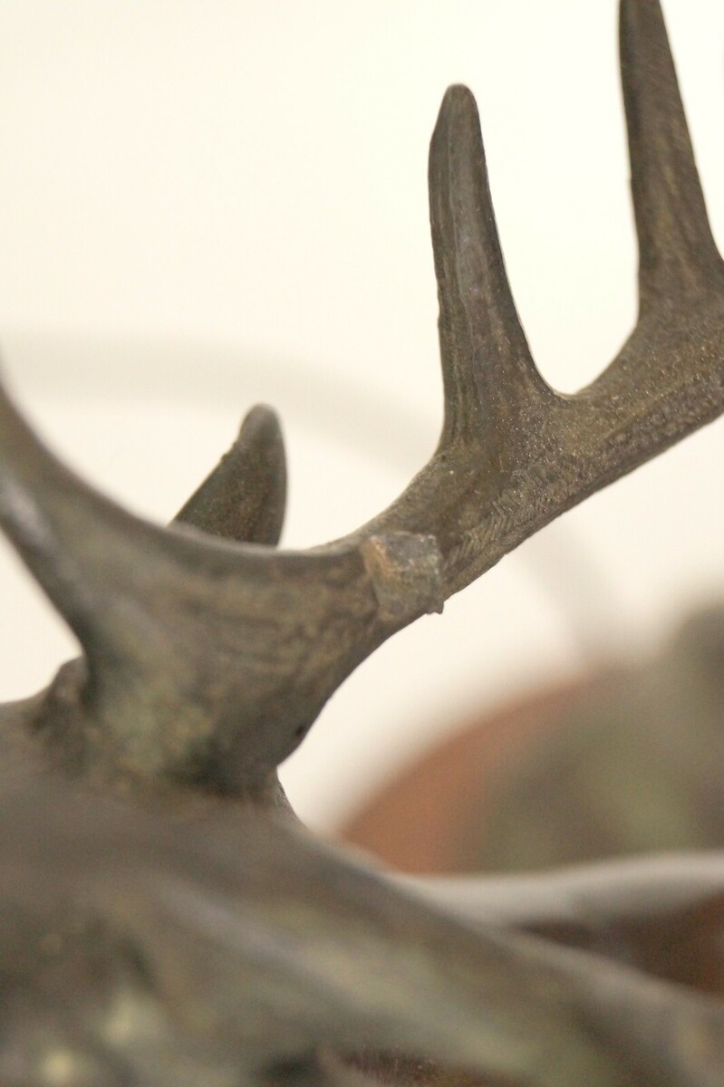 Very elegant original cast zinc mount with wooden base.