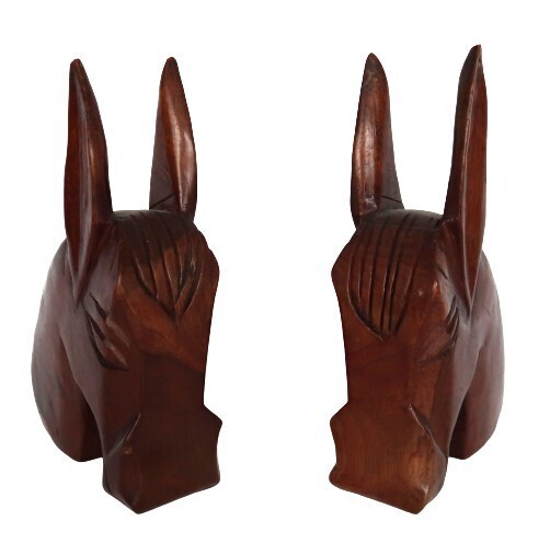Vintage MCM dark finish wooden donkey bookends