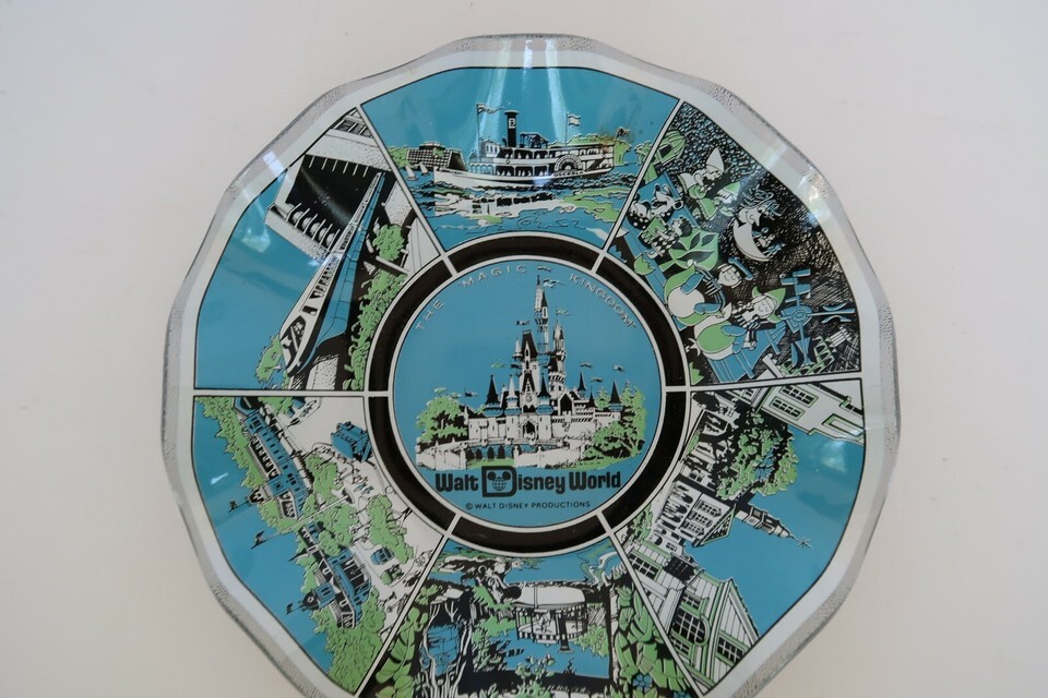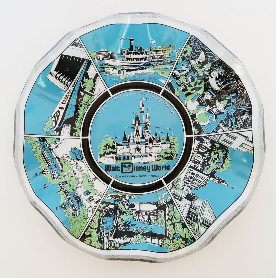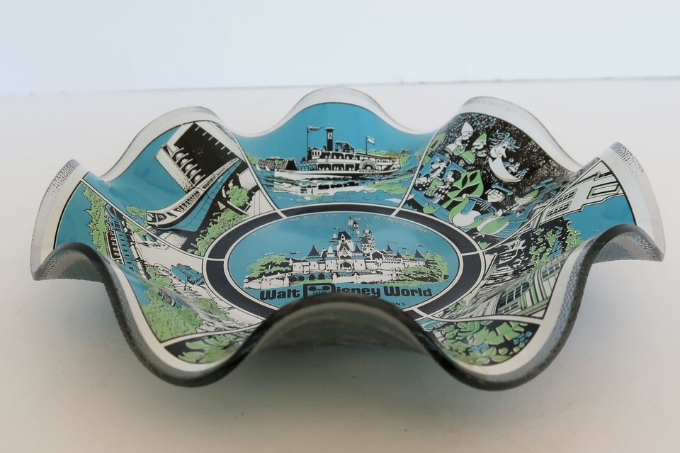 Vintage 70’s Walt Disney World Magic Kingdom 7” Ruffled Glass Plate