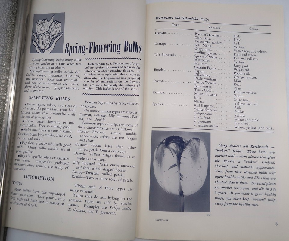 Vintage 1958 Booklet Leaflet Spring Flowering Bulbs USA USDA Flowers Government
