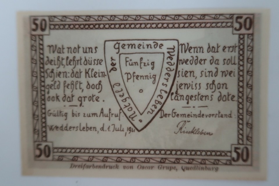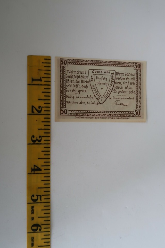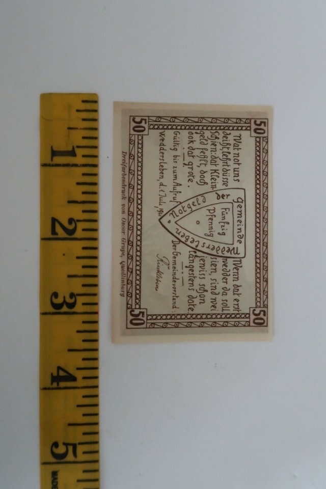 WW1 Notgeld Emergency 50 Pfennig Money Interbellum Weddersleben German Rare
