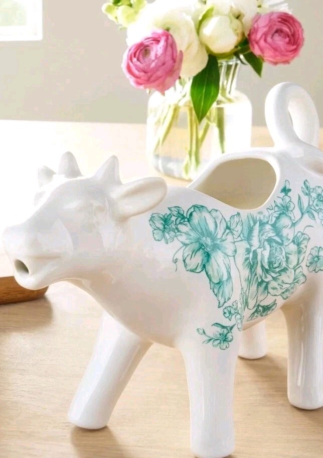 Pioneer Woman ~ AGATHA ~ Stoneware ~ Cow Shaped Creamer ~ GREEN Floral