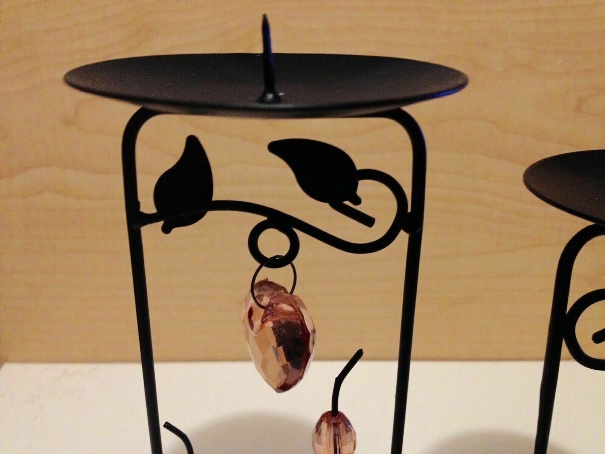 Up for purchase is a SET of Two (2) 3/4" Black Metal Spike BEADED JEWELED Decorative Pillar Candle Holders in EXCELLENT condition.