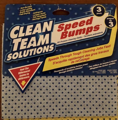 Up for purchase is a BRAND NEW 3-Pack CLEAN TEAM SOLUTIONS SPEED BUMPS All-Purpose Cleaning Cloths. RARE. Hard to find anywhere.