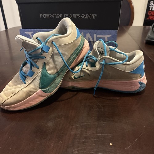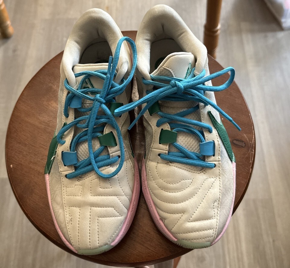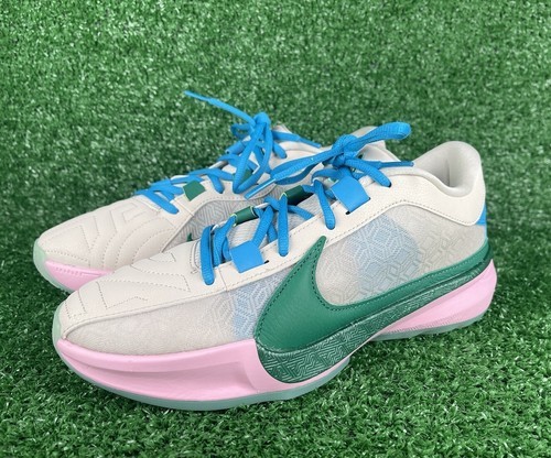 The Nike Zoom Freak 5 Five The Hard Way DX4985 100 Men's Basketball Shoes in size 7 are a stylish and comfortable option for basketball enthusiasts. Featuring a unique Sail/Blue/Pink/Green colorway and a sleek sneaker style, these shoes are designed for athletic performance. With a textile upper material and Nike's signature Zoom technology, these shoes offer both comfort and support for players on the court. The unisex design and 2023 release make them a versatile choice for both men and women looking for a reliable pair of basketball shoes.