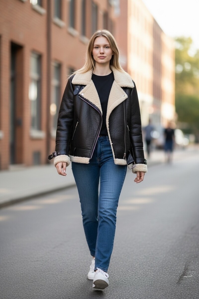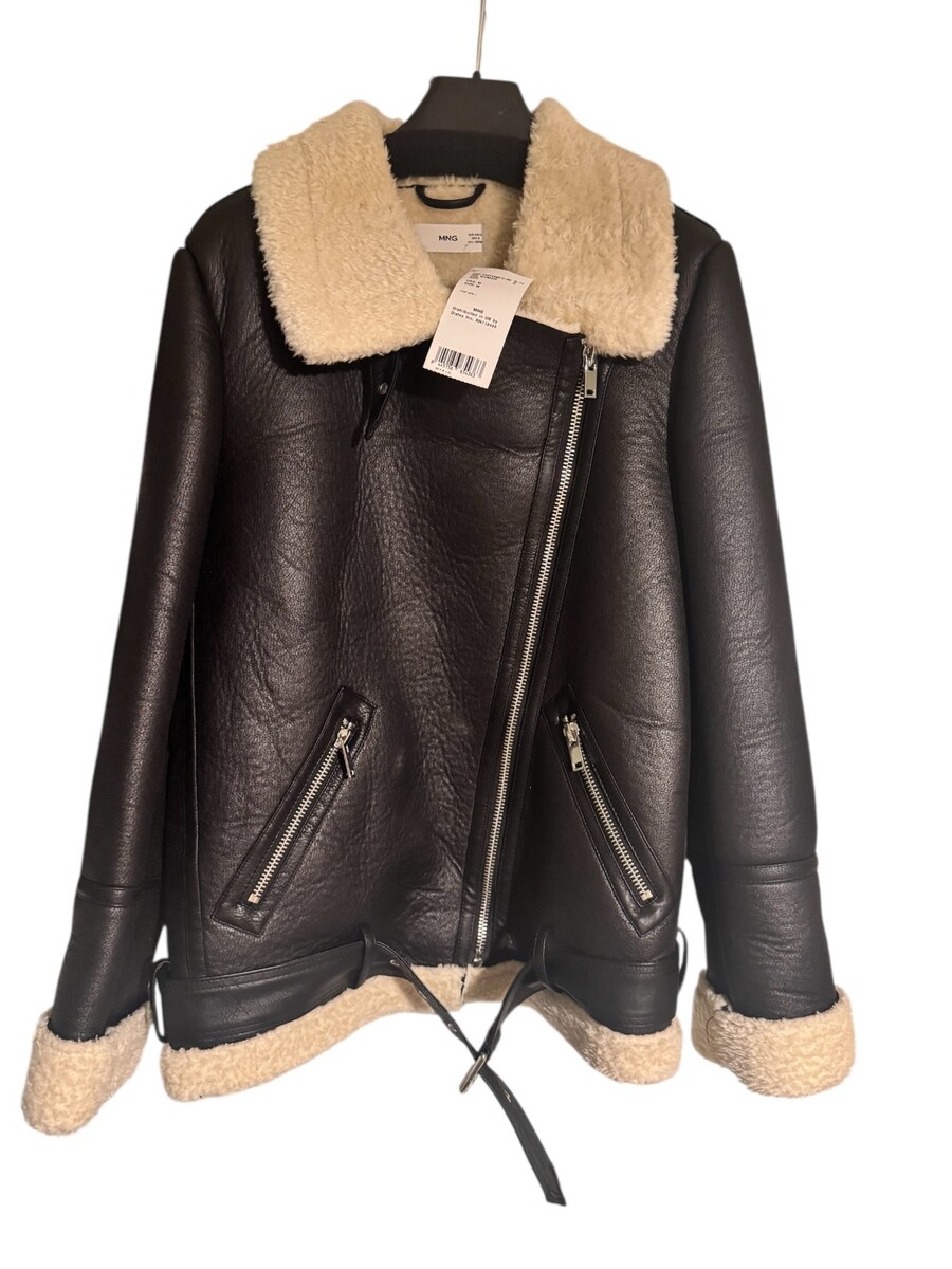 Mango MNG Women’s Faux Leather BROWN Jacket with OFF WHT SHERPA lining MEDIUM