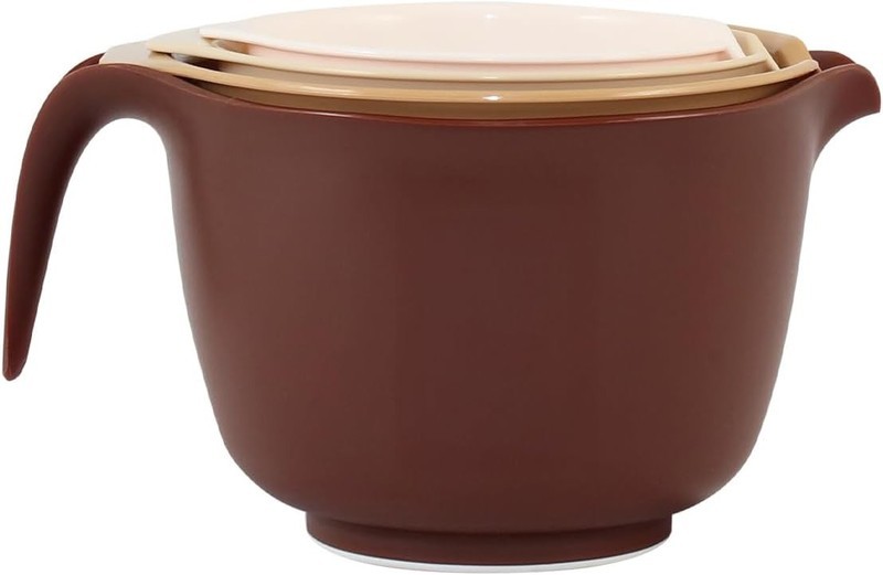 Mixing Bowls with Pour Spout, Set of 4 - Nesting Plastic Bowls (1.2Qt, 1.9Qt, 2.8Qt, and 3Qt with Handle) - Beige