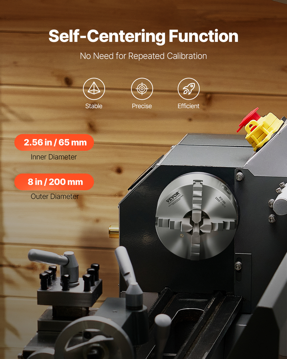 Self-Centering Function: The built-in self-centering feature allows for hassle-free use without repeated calibration. It ensures precise control over clamping accuracy, maintaining the stability and high precision of the lathe chuck for flawless performance