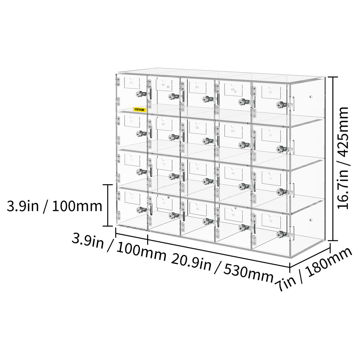 VEVOR Cell Phone Storage Locker, 20 Slots Acrylic with Door Locks and Keys