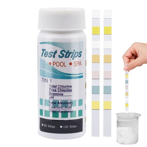 INCLUDES: 25 strips for testing total bromine, free chlorine, alkalinity, pH, and total hardness