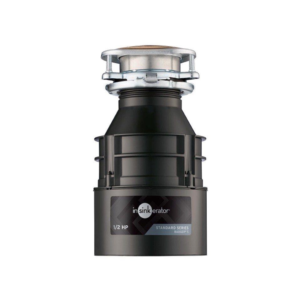 The InSinkErator Badger 5, 1/2 HP Continuous Feed Garbage Disposal features a Quick Lock mounting system that allows for easy installation or replacement of most disposers. This garbage disposal also features a 1/2 HP motor that rapidly grinds food waste for easy rinsing down the drain and galvanized steel-grind components.