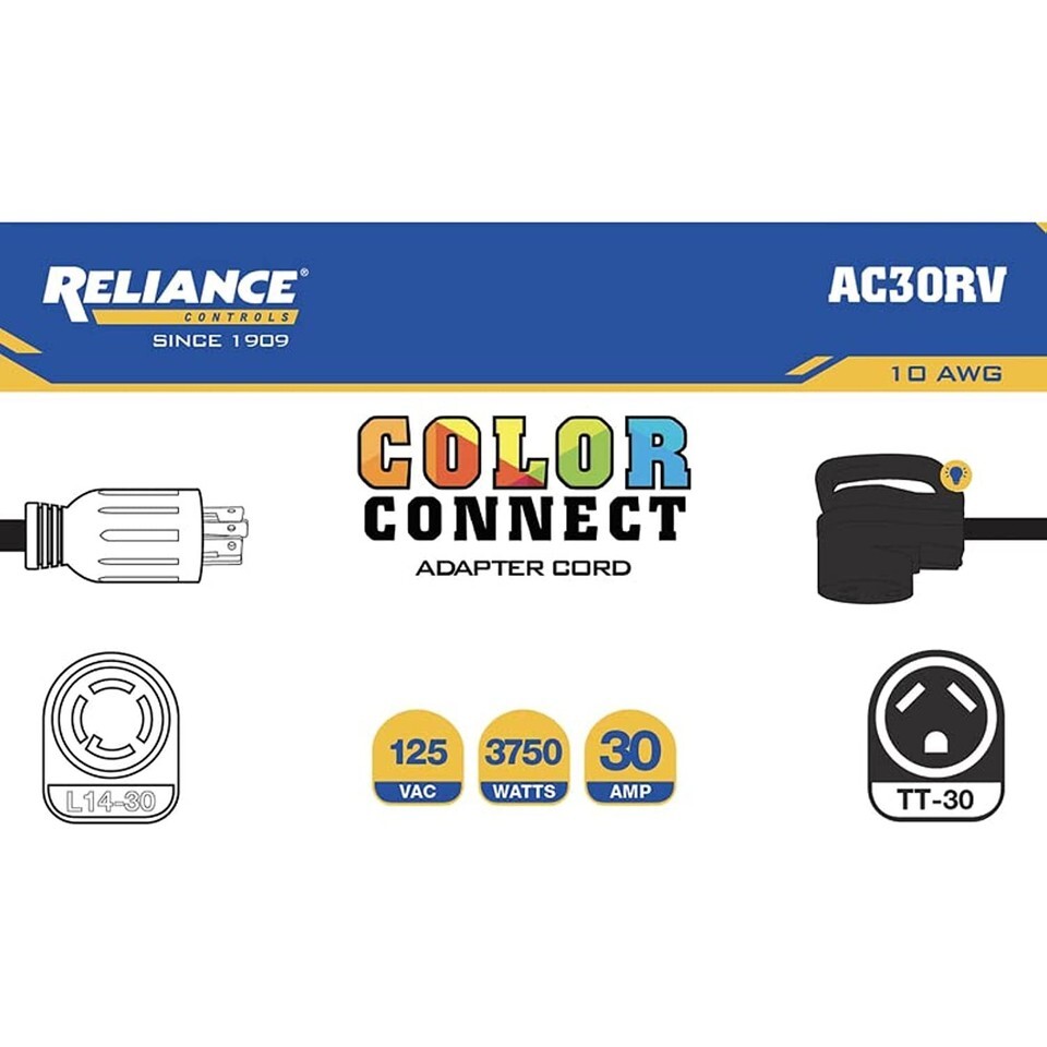Reliance Controls Color Connect 10/3 SJTW 125 V 12 in. L Adapter Cord
