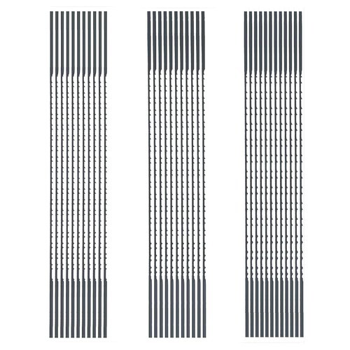Spiral Tooth blades saw in all directions. Excellent for 0 deg. radius scroll/fret work you never have to turn the workpiece. For cutting wood, plastic, wax, non-ferrous metals, plaster, bone, horn, etc. Cutting speed and finish depend on material thickness and number of teeth per inch.