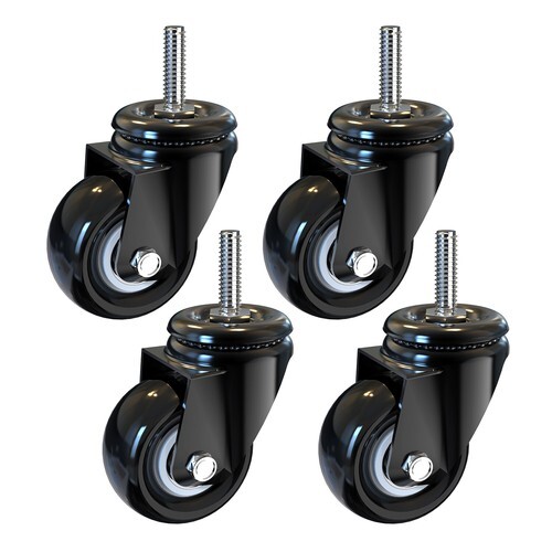 For metal furniture, carts, racks, appliances, and more. Double ball-bearing for instant swiveling. Black soft rubber wheels for smooth, silent operation on hard floors and chair mats.