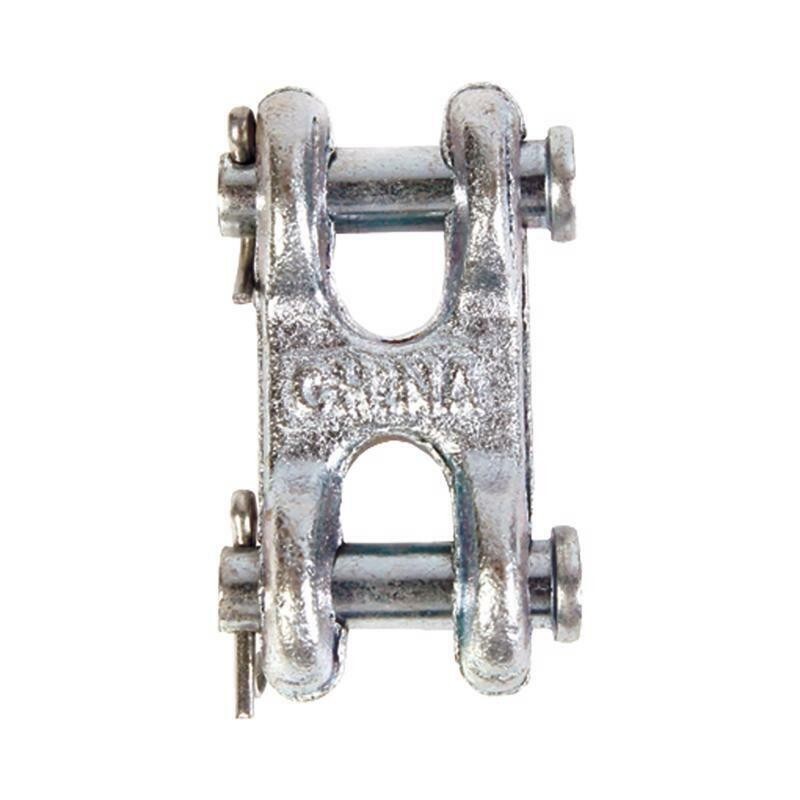 Forged steel construction with a zinc plated finish, double clevis links are easily attached to a chain or fitting by a removable pin