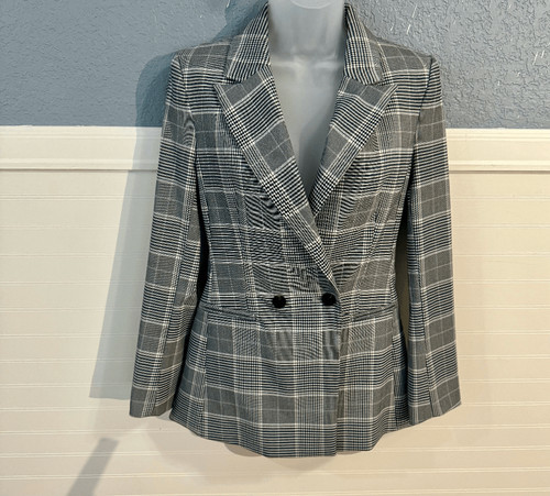SHEIN Plaid Pattern Flap Detail Double Breasted Tweed Blazer size M or 6
