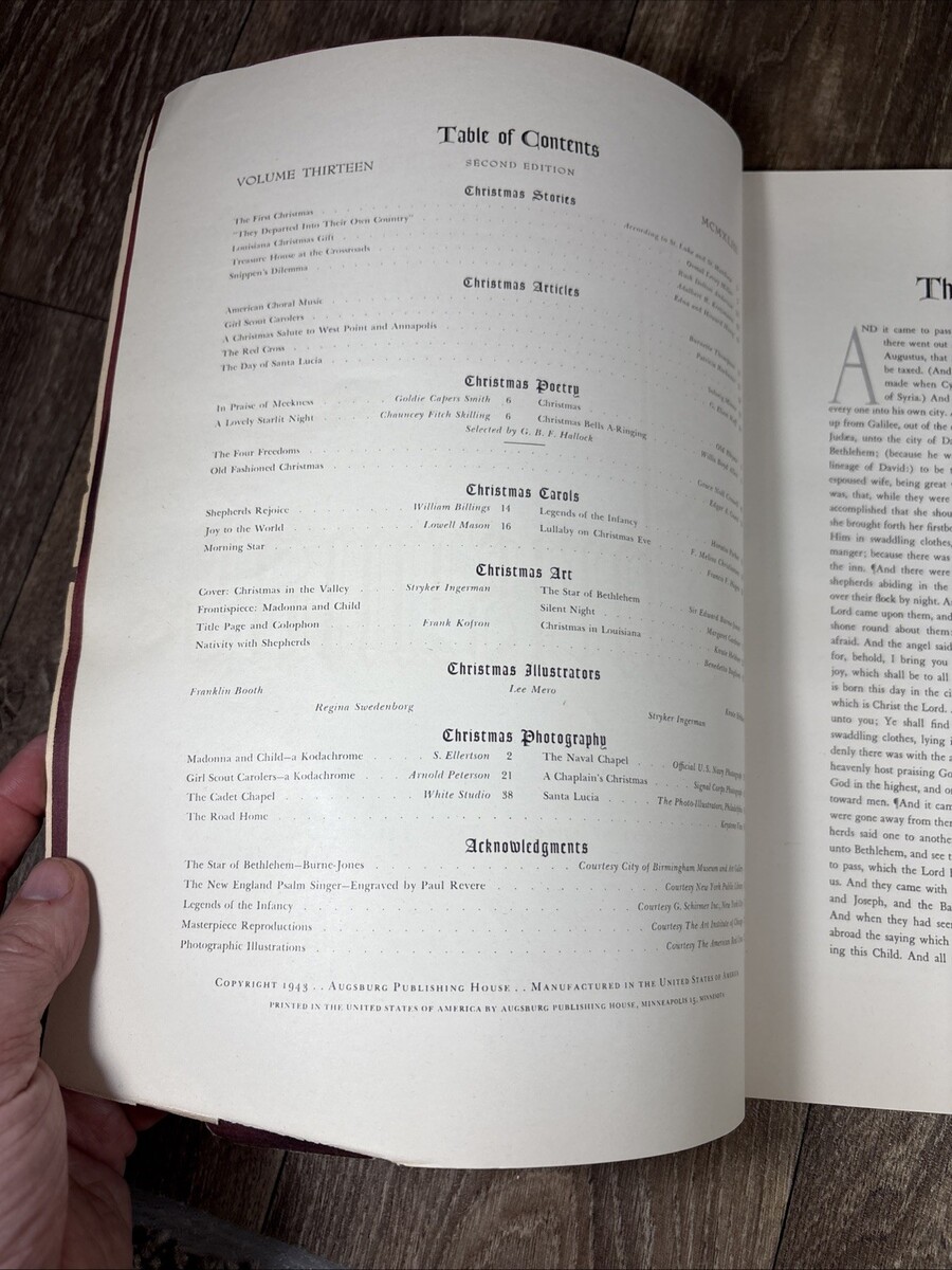 The product is an American annual of Christmas literature and art published by Augsburg Publishing in 1943. This collection of Christmas-related literature and art would be a valuable addition to any holiday enthusiast's collection, offering a nostalgic look at Christmas traditions and practices from that year. The publication likely includes a variety of stories, poems, illustrations, and artwork that capture the essence of the holiday season in 1943, making it a unique and special collectible item for anyone interested in holiday memorabilia.