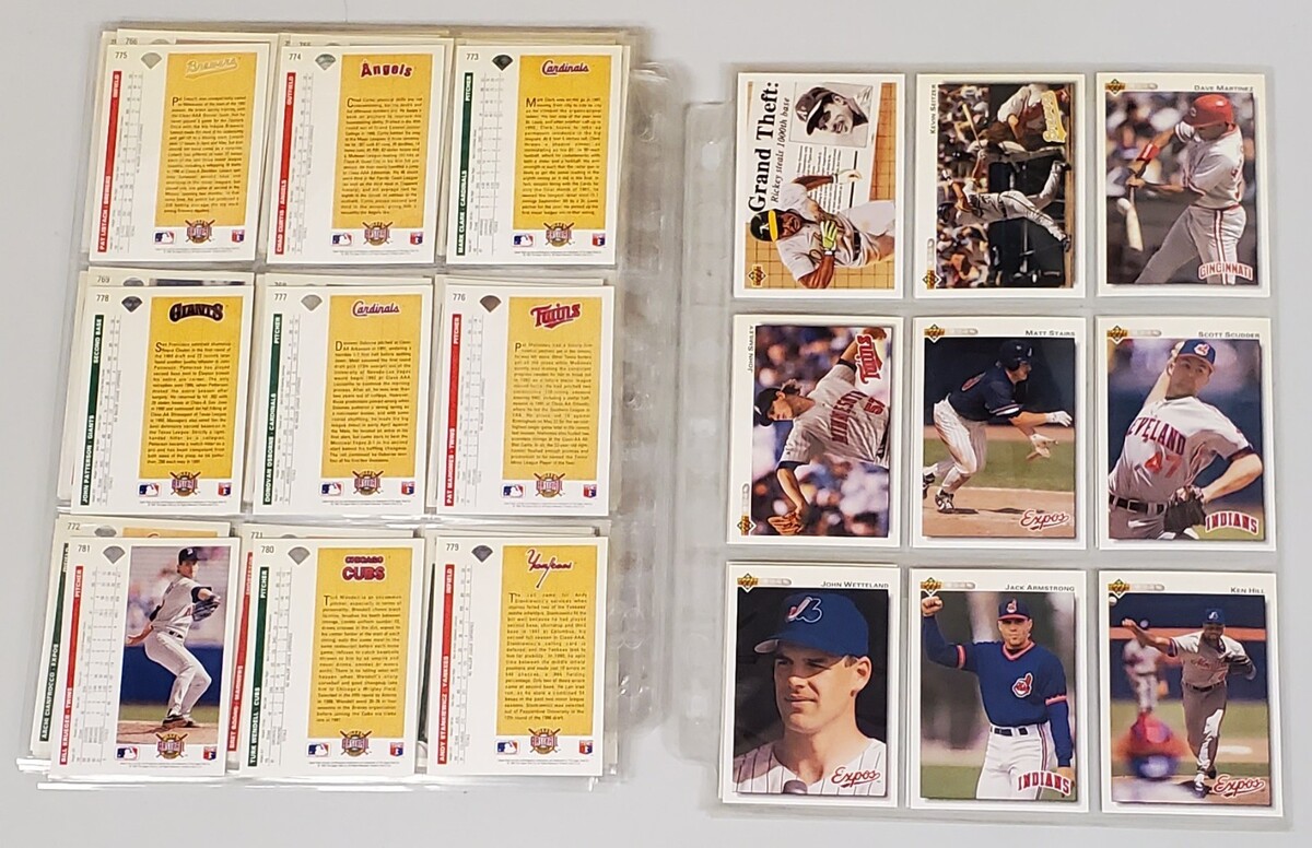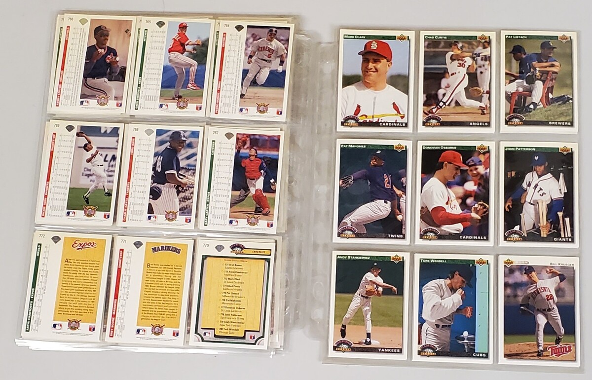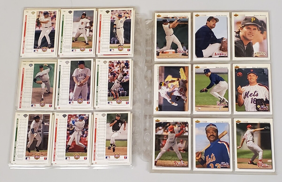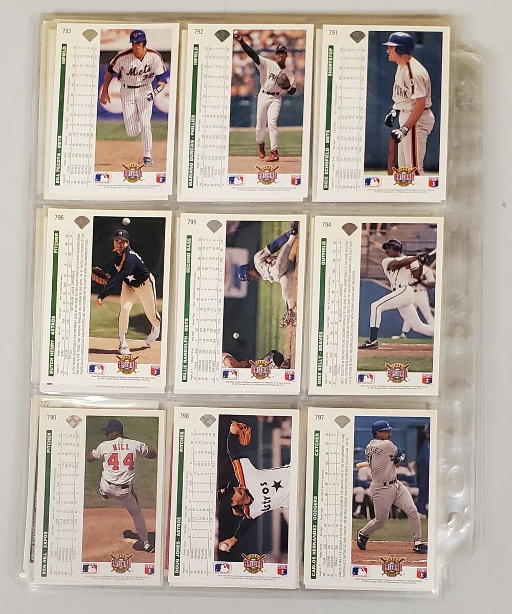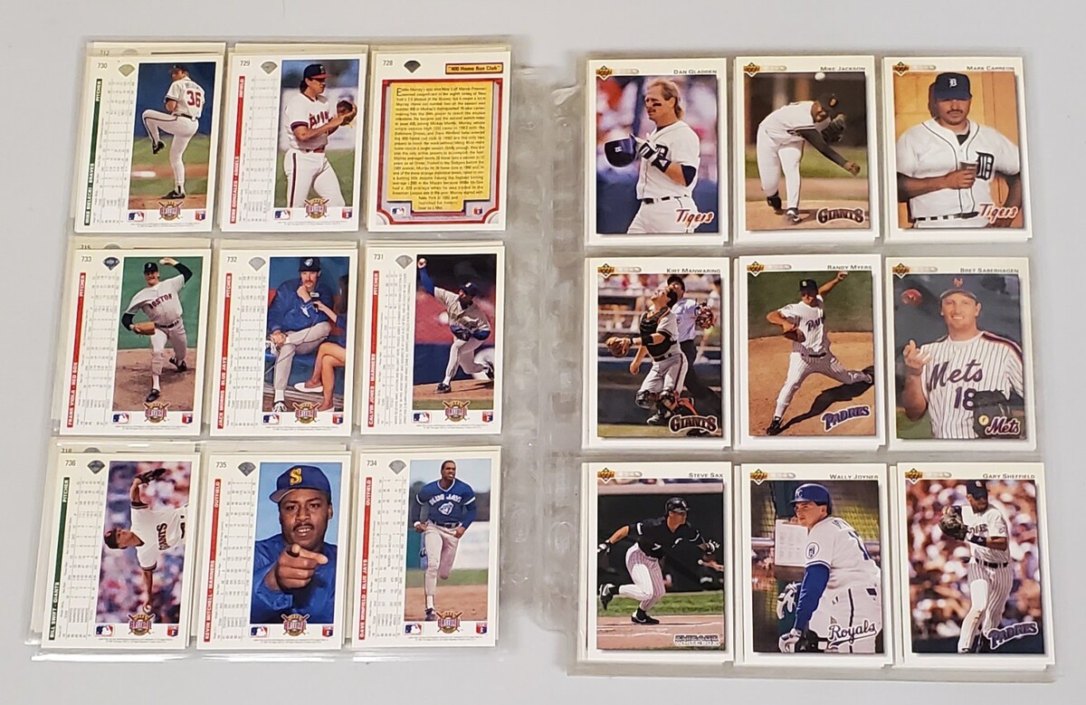 Awesome collection of 97 vintage Upper Deck baseball trading cards from 1991 and 1992, carefully stored and protected with 9-pocket sleeves. These are premium early-90s Upper Deck issues known for sharp photography and clean design.