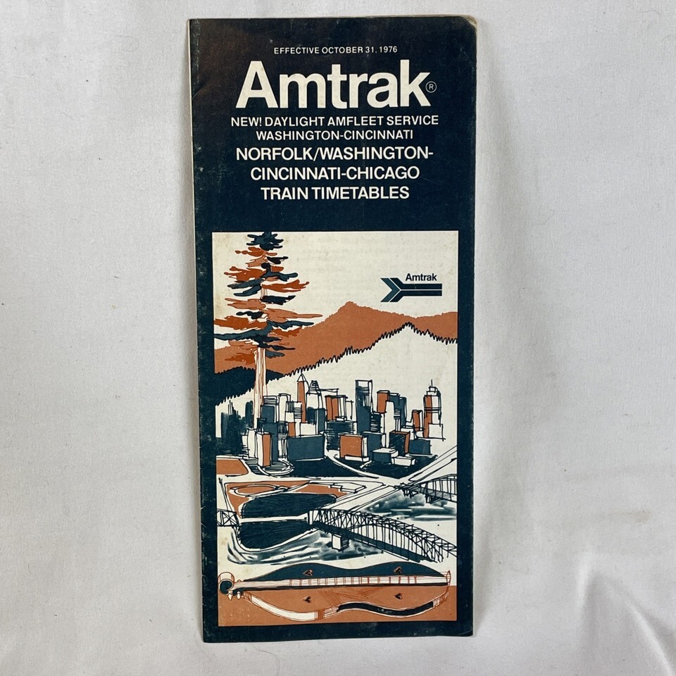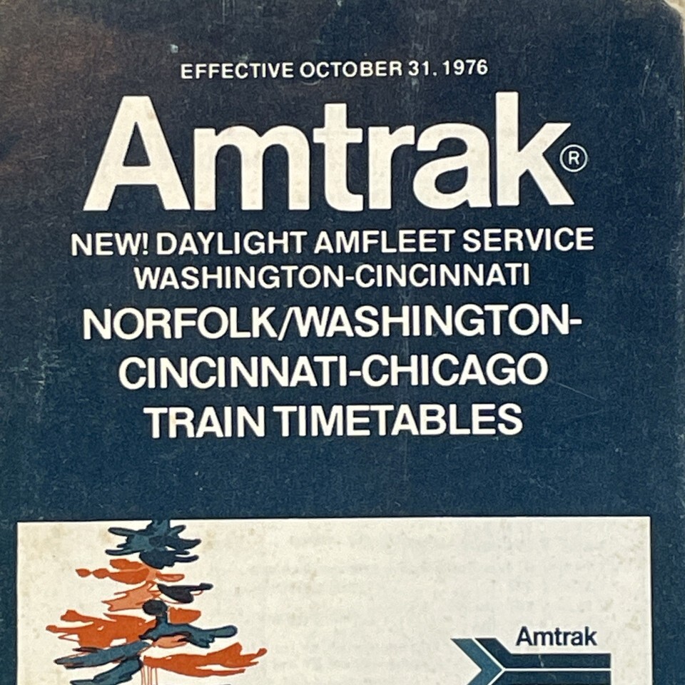 Amtrak Brochure 1976 Norfolk Washington Cincinnati Chicago Timetables
