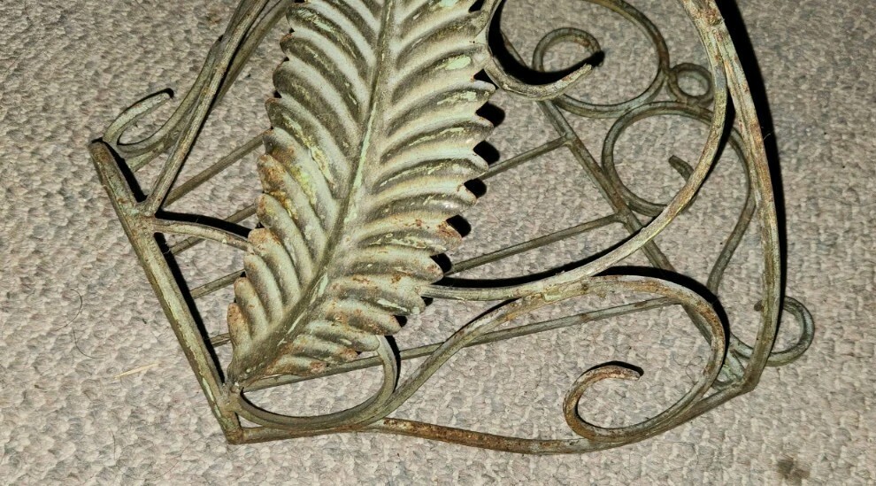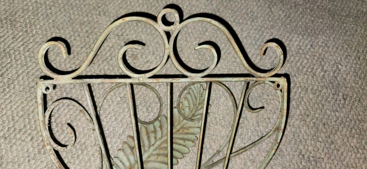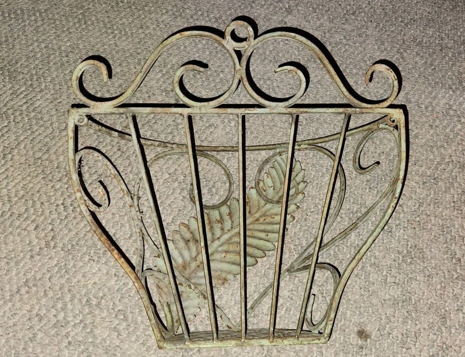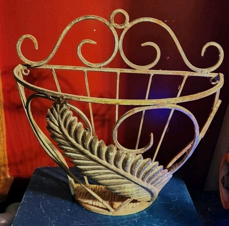 VTG Iron Metal Decorative Wall Hanging Planer Fern Leaf Design Scroll Top