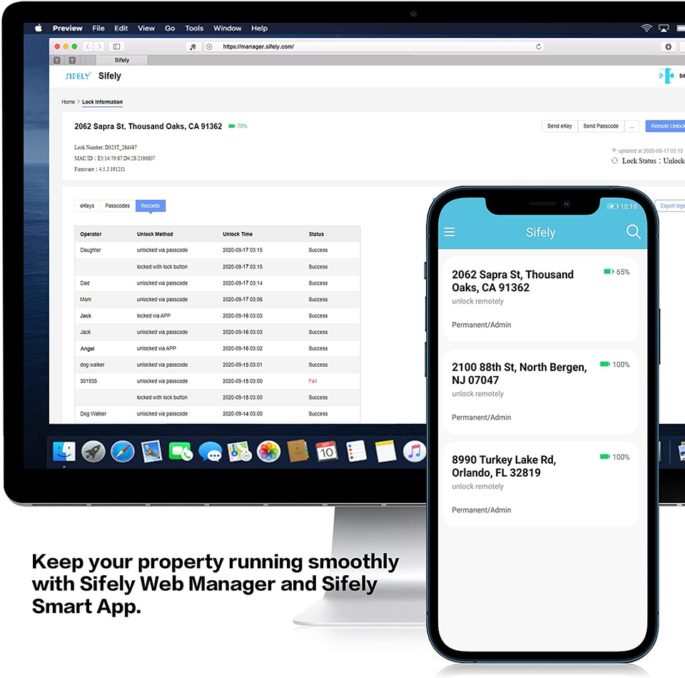 [Remote Control / WiFi Access] If paired with Sifely WiFi Gateway (Optional Add-on, Sold Separately), you can lock/unlock your smart door lock anywhere anytime, set up codes remotely and check real-time access logs.