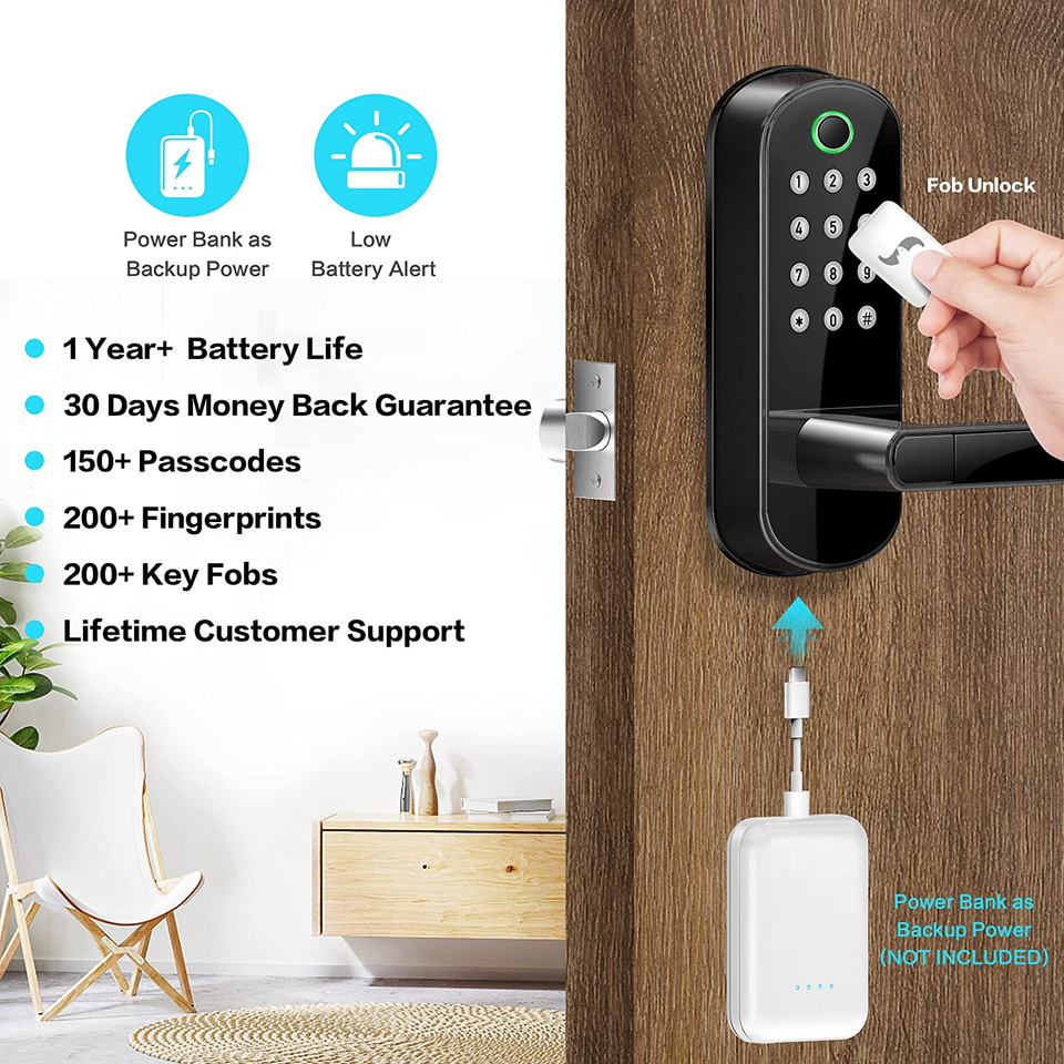 [Homeowners Rental Hosts] Great solution for Airbnb HomeAway short-term rental hosts, rental property management, and self-housing resident. Generate a passcode remotely w/o internet and share it to your visitors. [Advanced 3D Fingerprint] Unlock the door less than 0.3 seconds with our 3rd generation fingerprint access technology. The most secured 5-in-1 Keyless Entry Smart Door Lock: Fingerprint + Passcode + Fob + Smartphone + Key. [Satisfaction Guaranteed] App/Software is free to use forever. No hidden charges or long-term costs. 30-day money back guarantee, 1-year product warranty and a lifetime customer support following the date of purchase. We offer the best prices around on high quality products. Our E-store includes media such as books, movies, music and games while offering el