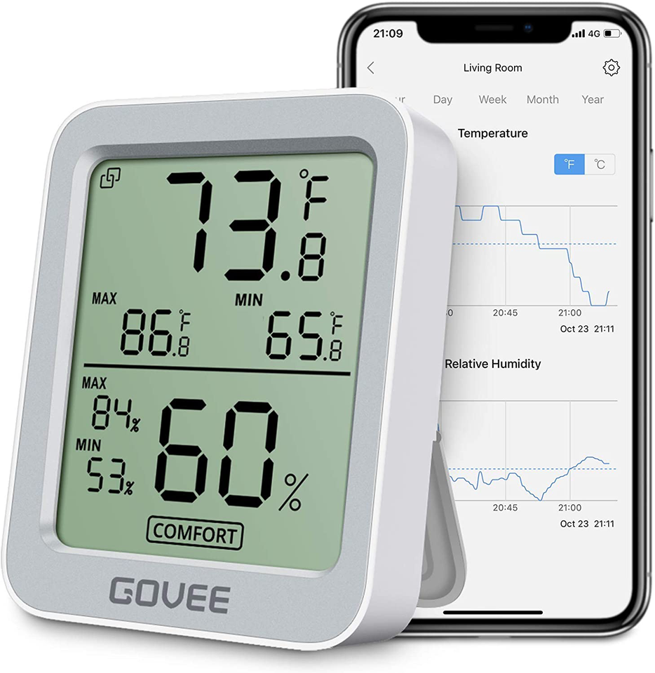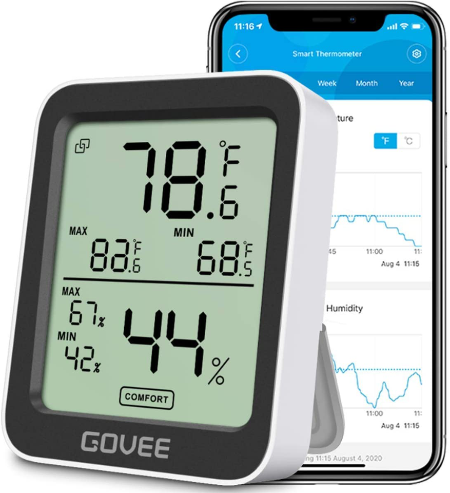 Govee Bluetooth Hygrometer Thermometer, Humidity Temperature Gauge with Remote Monitor, Large LCD Display, Notification Alert with Max Min Records, 2 Years Data Storage Export, Black