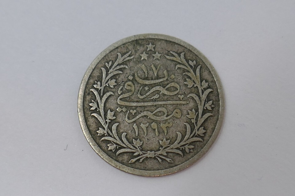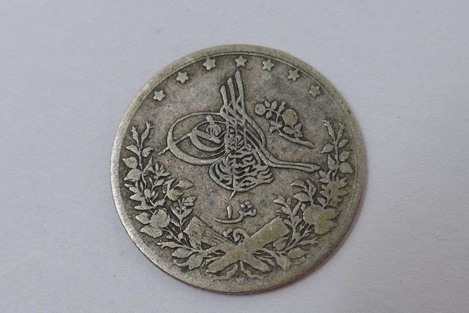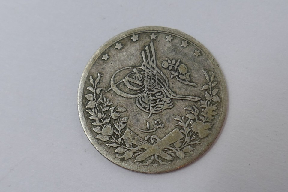 This is a silver 20 Qirsh coin from Egypt, minted in 1896 during the reign of Abdul Hamid II. Only 54,000 minted from this year. The historical coin offers a glimpse into the times of the Ottoman Empire and the intricate designs and craftsmanship of Egyptian currency from the late 19th century. A valuable addition to any numismatic collection or a unique piece for collectors interested in African and Middle Eastern coins.