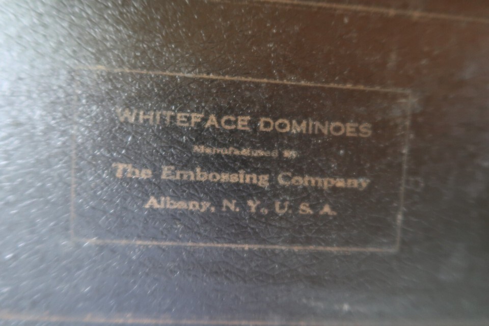 Vtg Whiteface Dominoes The Embossing Company Albany NY Original Case 26 Pieces
