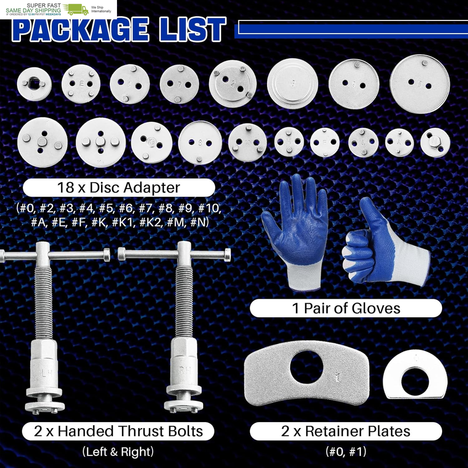 Easy to Use: By attaching the plate to the handle, firstly choosing the appropriate disc adapter that matches your vehicle. Then effortlessly rotate the pistons back into their respective calipers, ensuring optimal pad clearance. Our disc brake caliper compression set includes a comprehensive instruction manual to providing added convenience.