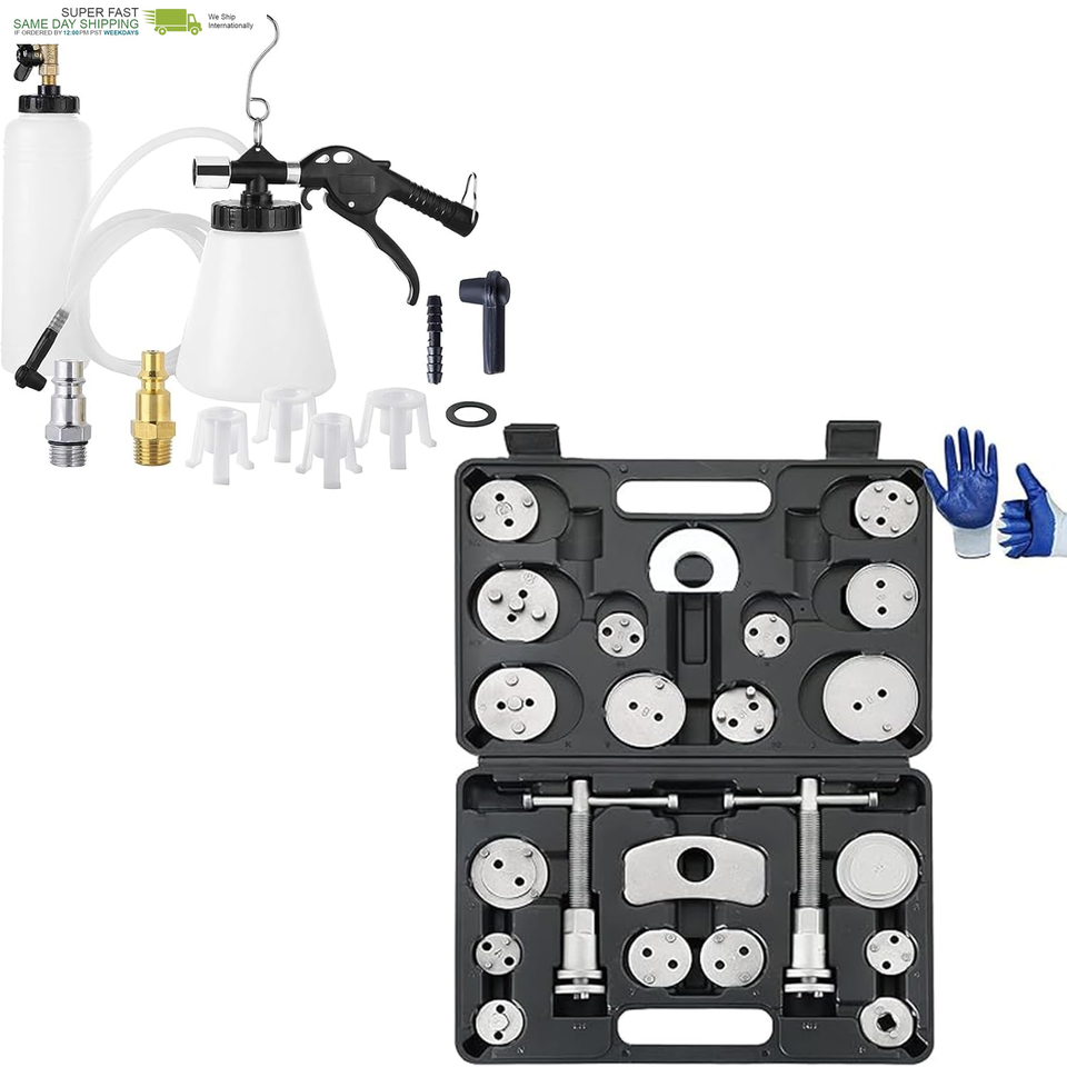 Heavy Duty Disc Brake Caliper Tool Set & Pneumatic Brake Fluid Bleeder Tool
