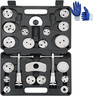 This disc brake caliper tool kit includes various adapters, accommodating a wide range of vehicles including American, Japanese, and European models.