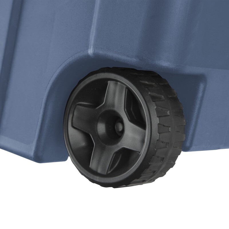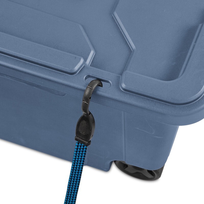 40 Gallon Wheeled Industrial Tote, Rugged Plastic Storage Bin, Latch Lid, Blue,
